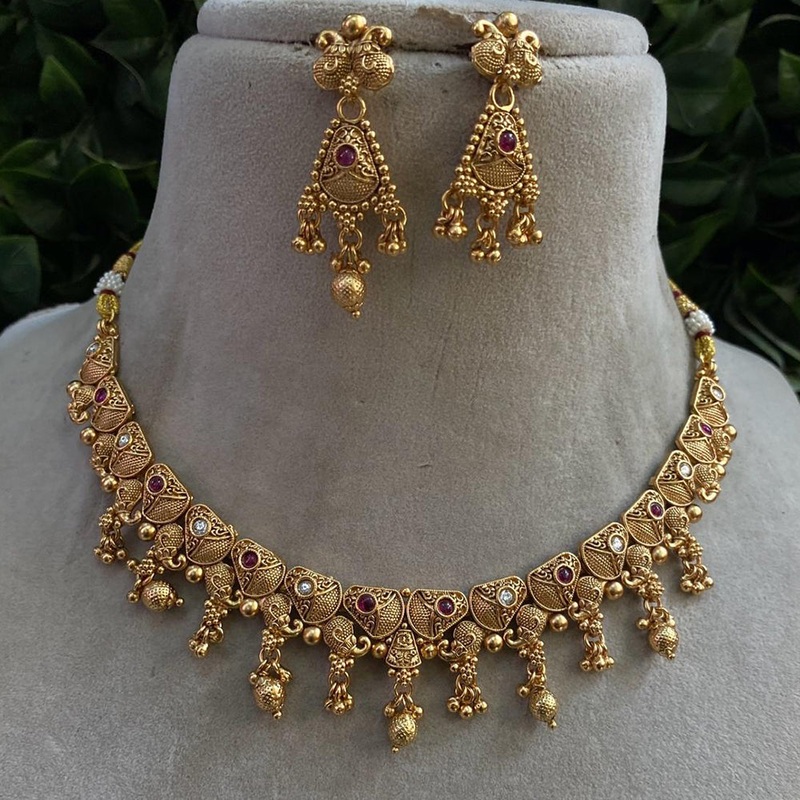 Royal Kundan Jewellery Gold Plated Pota Stone Necklace Set