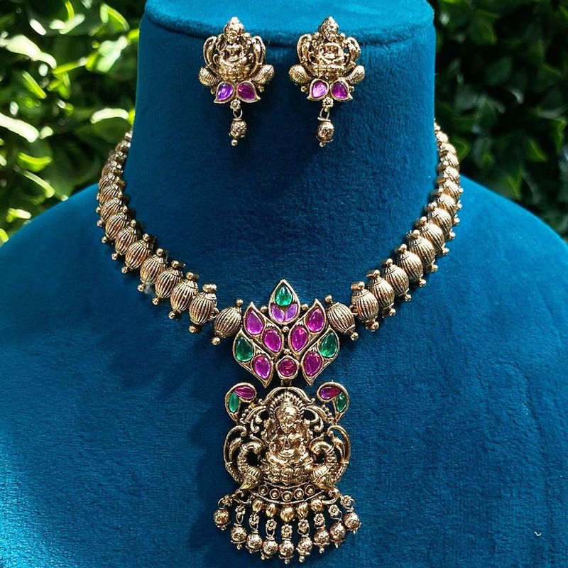 Elevate your style with this exquisite Royal Kundan Jewellery necklace set. Made with premium gold plating and adorned with stunning Pota stones, this set is a perfect blend of tradition and modernity. With its intricate temple design, it is sure to make a statement at any occasion…………Note: Image may vary slightly from the actual Product .