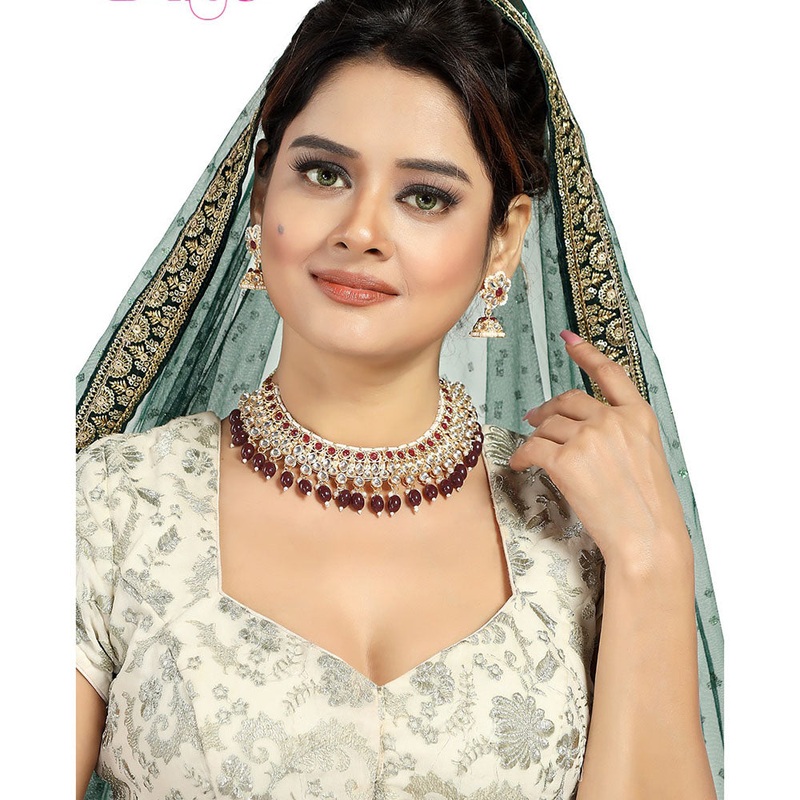 Rudraksh Art Gold Plated Kundan Stone And Beads Necklace Set