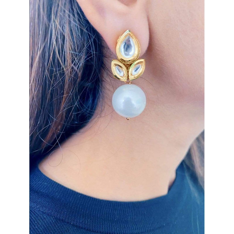 A definite investment style! The Ryka Drop Earrings accented with Kundan and a pearl drop make for a versatile, classy and elegant pair to own.