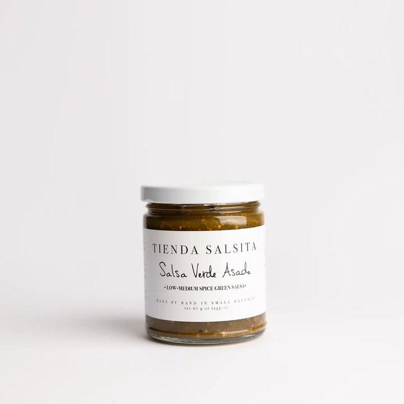 Low-med spice. Crafted with roasted chiles and tomatillos, this vibrant salsa boasts a deliciously fresh and multi-layered flavor. Perfectly complementing tamales, meat, avocados, and soups, it’s a versatile and mouth-watering addition to any meal. Handmade in small batches. 9 oz.