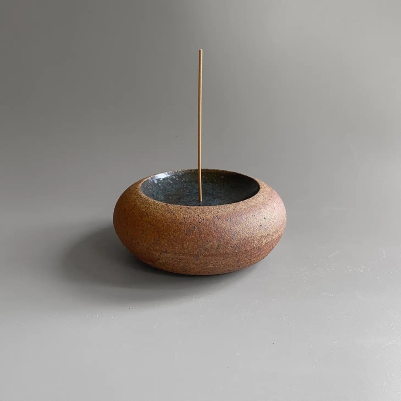 Designed with a traditional stick incense holder as well as a bowl for sage or palo santo. Wheel-thrown stoneware with glazed interior and raw ceramic exterior. Sandstoneclay body has dark iron specks and ranges from sandybeige to warm brown. All pieces are hand-stamped with our maker’s mark.Alll pieces are hand-stamped with the maker’s mark.