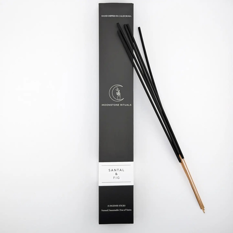 Embark on a sensory journey with Moonstone Ritual's new line of charcoal-based incense, delicately hand-dipped in small batches, to infuse your space with elegance and tranquility. Immerse yourself in the captivating harmony of our Santal & Fig fragran