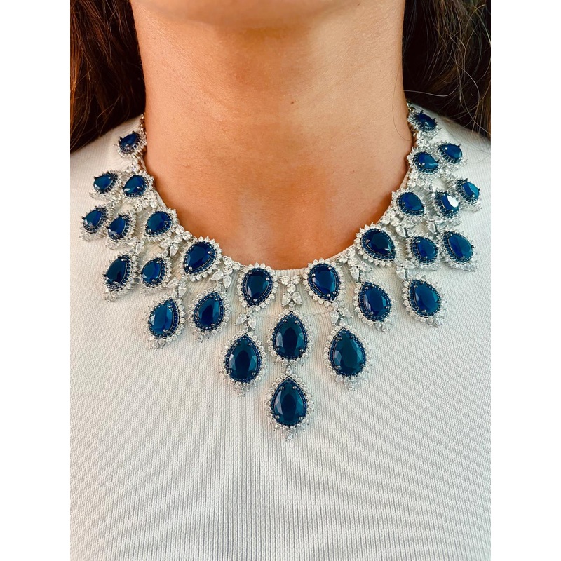 The Sapphire Tear Drop Necklace Set (Necklace & Earrings) is an absolute masterpiece to take your outfit to a straight ten!!!