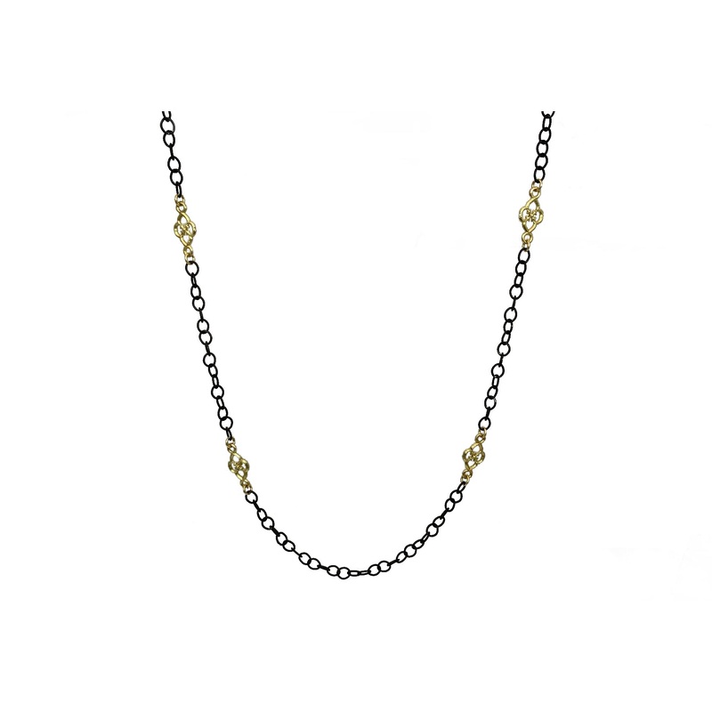 18K Yellow Gold and Blackened Sterling Silver 18" Mini Gold Scroll Station Cable Chain Toggle Necklace