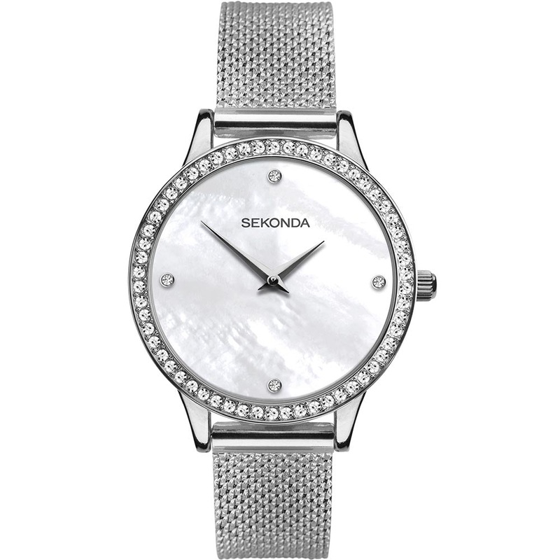 Showcasing a pristine mother-of-pearl dial, the Sekonda SK40035 Stone Set Womens Watch wears like a dream. Pair this fine timepiece with any outfit, and let its glistening stones and white dial glow. A pressed mesh bracelet offers an alternative style for you to enjoy, with a comfortable feel on the wrist.