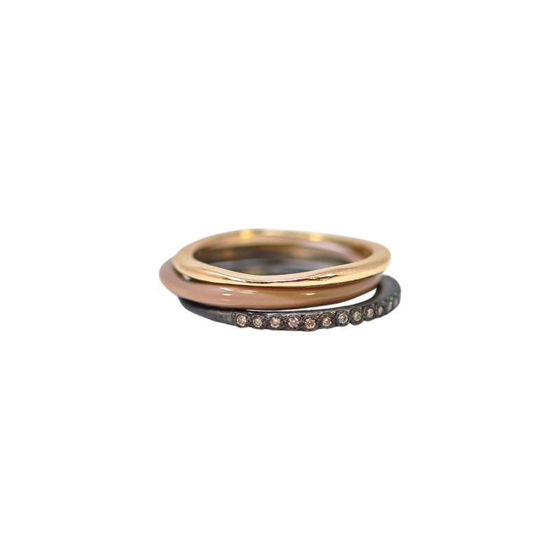 Ring 14k Rose Gold and Blackened Sterling Silver with 0.095 Champagne Diamonds and Enamel.