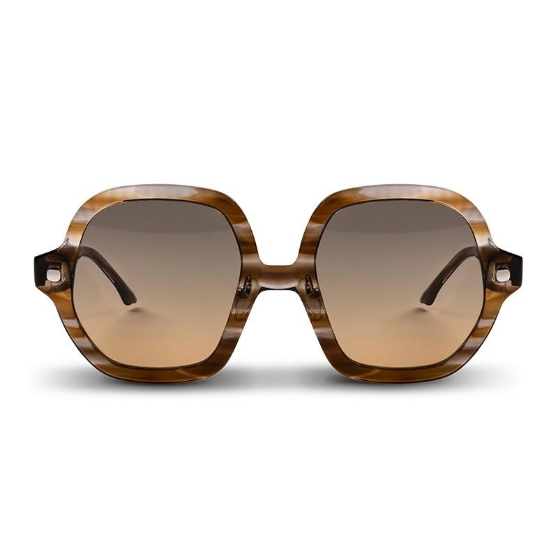 SevenFriday Sunglasses Middle Bridge Shady Size 54-23 ICF1/05.Frame:Polished yellow hues tortoise acetate. Applied 2N color polished TV shape signature. Oversized frames with mid bridge position. Front width: 154,4mm Lenses: H:53,6mm, W:53,3mm. Adjustable