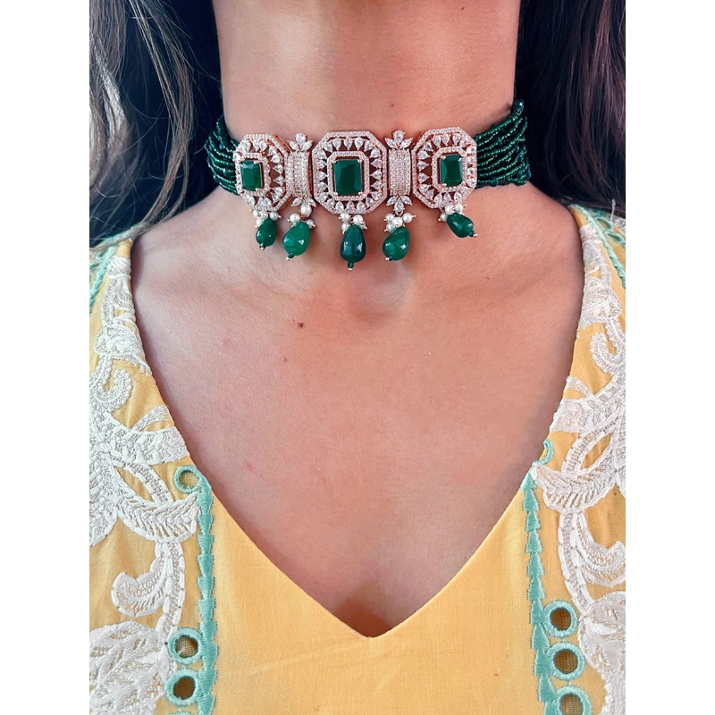 The Shazia Green Set is from our Indian Collection.Handcrafted with semi precious stones, the Shazia set includes beautiful Earrings & Necklace piece to own. with elegance and class, it is a luxurious pick for your festive outfits.Grab this beauty now
