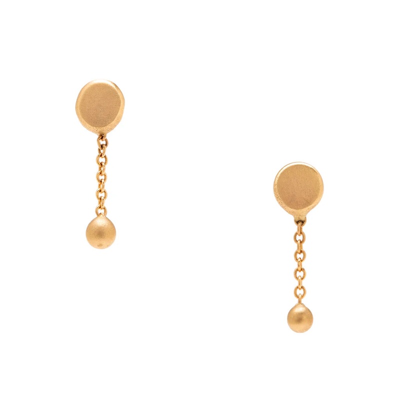 Handmade in 14k gold, each earring is 1cm long, and the top circle measures approximately 3.4mm in diameter