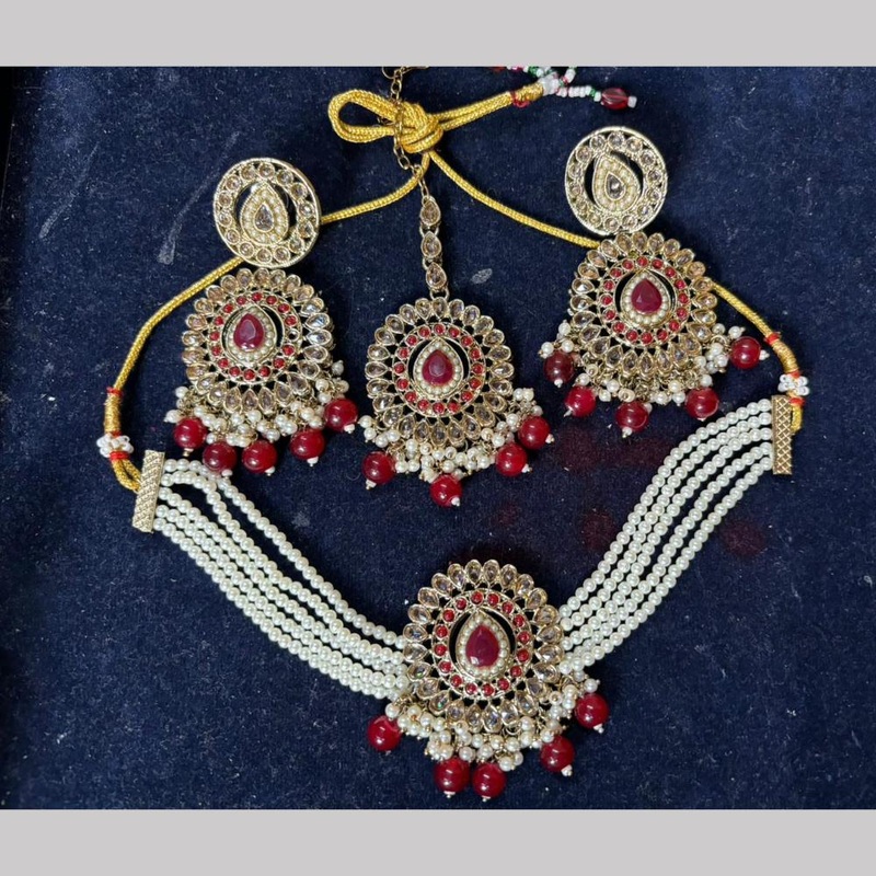 Shree Chamunda Jewellers Gold Plated Crystal Stone Beads And Pearls Necklace Set