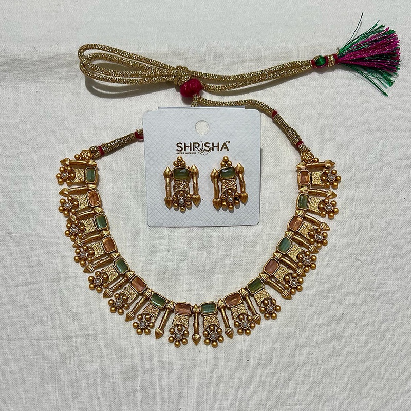 Add a vibrant touch of ethnic elegance to your jewelry collection with the Shrisha Ethnic Gold Plated Stunning Crystal Stones Necklace Set (Mix Color). This dazzling set is a celebration of rich tradition and modern charm, featuring a carefully crafted necklace embellished with multi-colored crystal stones that sparkle with every movement. Finished with a radiant gold-plated base, this jewelry set is designed to complement a wide range of festive and traditional outfits.. Note: Image may be vary slightly from the actual product.