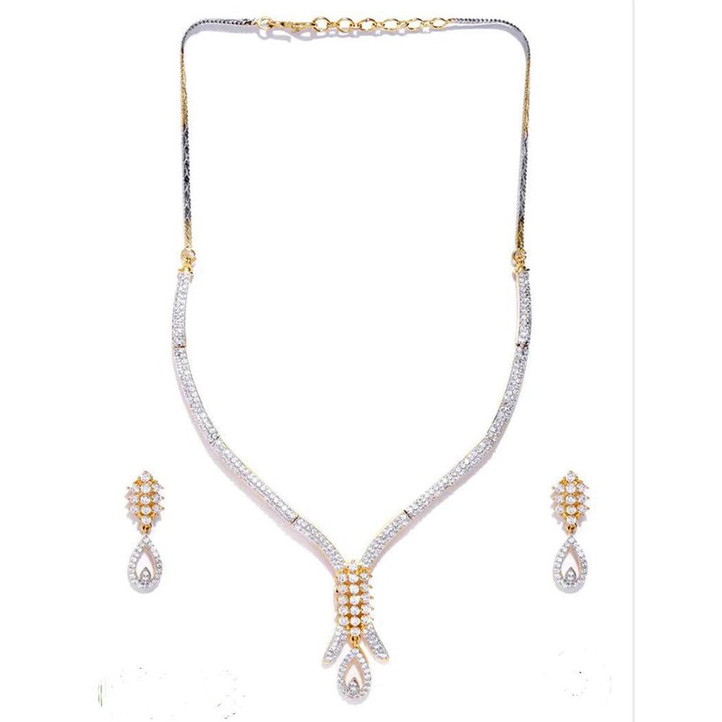 This exquisite Sian American Diamond Necklace Set is expertly crafted with precision and attention to detail. Adorned with sparkling diamonds, it adds a touch of elegance and sophistication to any outfit. Made with high-quality materials, it is durable and perfect for any occasion.