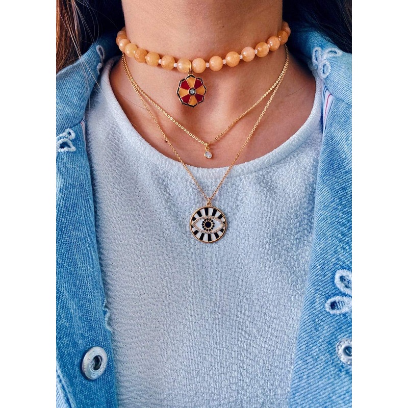 Known for protecting the wearer against bad vibes and warding off any negative energies, the encircled Sicura Evil Eye Charmis finished with beautiful hand-enamelling and a sparkling stone setting.