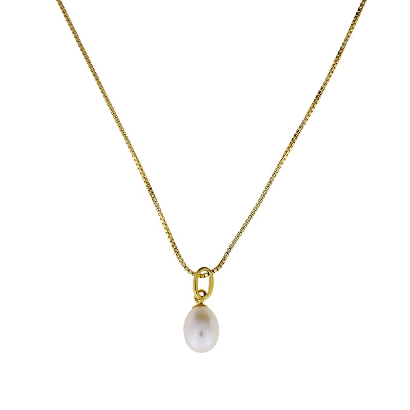 This classic pendant features a teardrop shaped freshwater pearl suspended from our signature gold vermeil adjustable box chain.