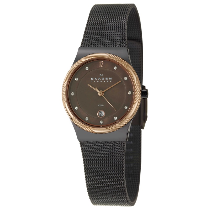 Skagen, Mesh, Women’s Watch, Black Stainless Steel and Rose Gold Plated Case, Black Stainless Steel Bracelet Mesh Style, Quartz (Battery-Powered), 880LDDR