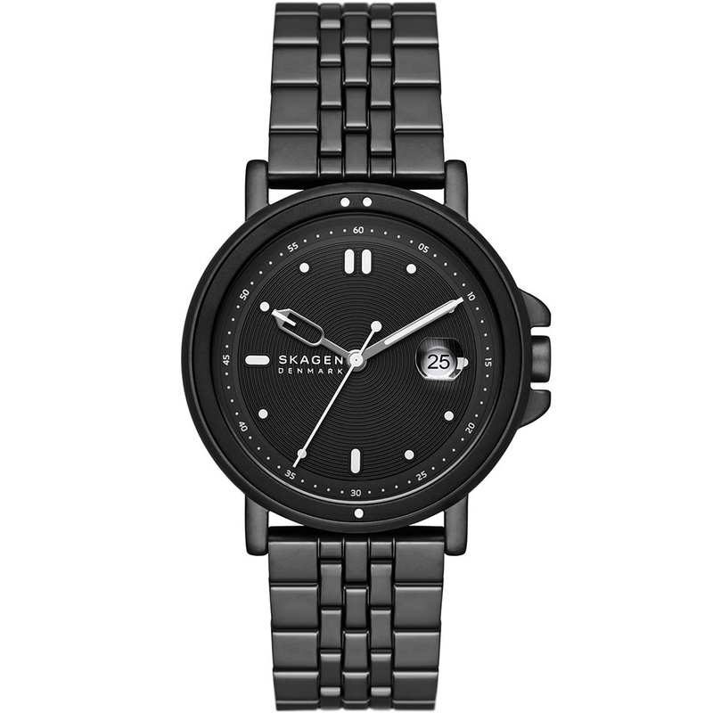 The Skagen SKW6921 Signatur Sport presents a sleek, modern look with its black tone case, dial, and bracelet. The 40mm stainless steel case is both durable and stylish, while the mineral glass ensures clarity. Featuring a convenient date display and 50 met