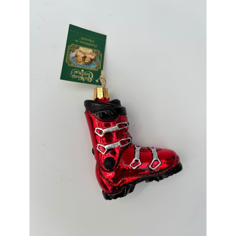 Hit the slopes in style with this highly detailed Ski Boot Glass Ornament. Perfect for the avid skier or anyone who loves the thrill of the winter season, this hand-painted, mouth-blown ornament captures the look of a high-performance alpine boot.