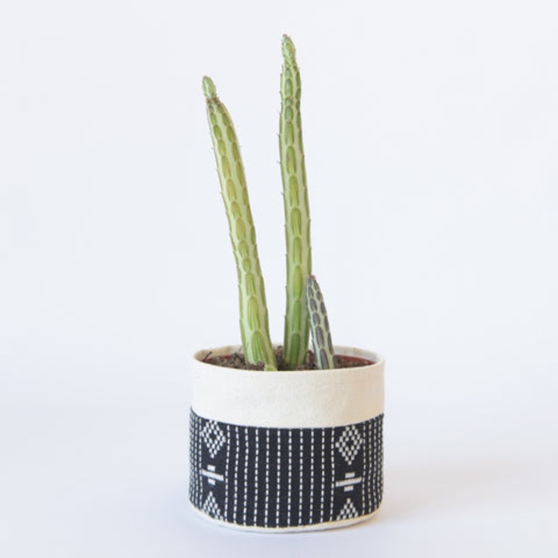 Add some color, warmth and joy to your living space and showcase yourfavorite houseplants in these handmade canvas planters. Each canvas planter basket includes a plastic planter pot and a saucerthat fits perfectly inside so the plant can be watered direct