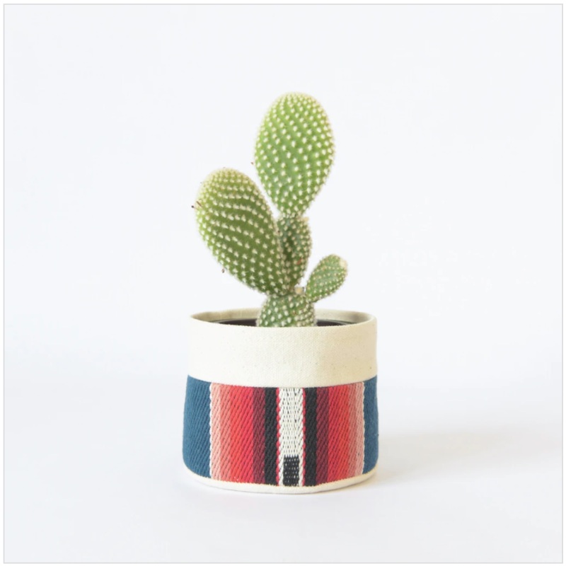 Add some color, warmth and joy to your living space and showcase yourfavorite houseplants in these handmade canvas planters. Each canvas planter basket includes a plastic planter pot and a saucerthat fits perfectly inside so the plant can be watered direct