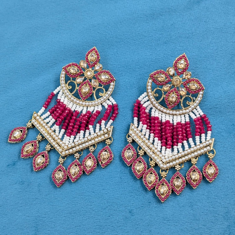SNERA Gold Plated Crystal Stone And Beads Dangler Earrings
