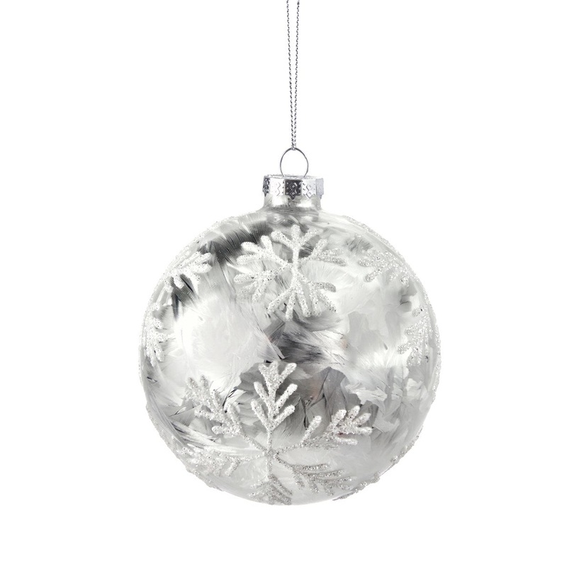 Dress up your tree with this beautiful silver orb ornament styled with embossed snowflakes with silver & white glitter accents.