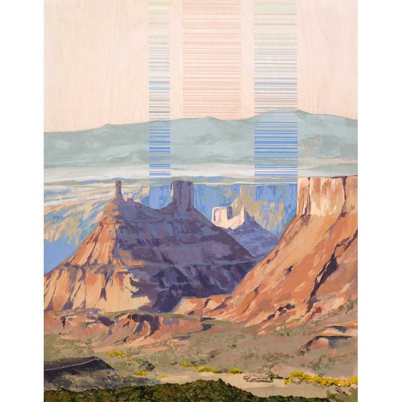 “Soloist” depicts Castleton Tower, one the American Wests most iconic desert towers outside of Moab, Utah. The delicate linework ascending from the shadows of the canyon are symbolic of the relationship that many humans have with this place. Castleton Tower is a big climbing destination, thus many of its visitors trek to this place in the hopes of ascending it. The title is a reflection of both the sense of peaceful isolation that desert travelers can experience, as well as the goal that some climbers have of solo climbing Castleton.
