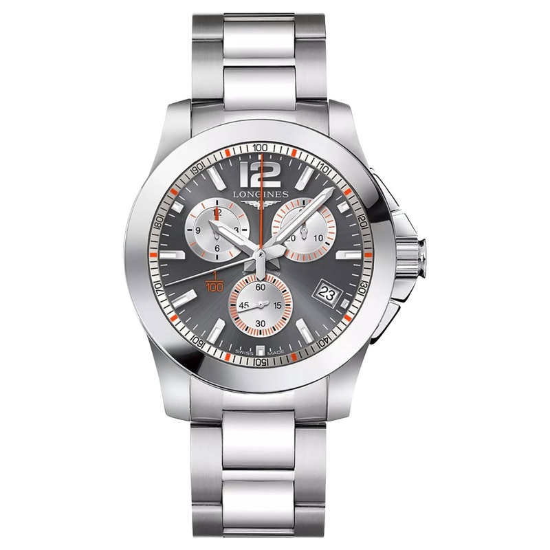 Longines Conquest 1/100th Roland Garros Special Edition Chronograph Stainless Steel Gray Dial Date Divers Quartz Mens Watch Model# L3.700.4.79.6 / L37004796