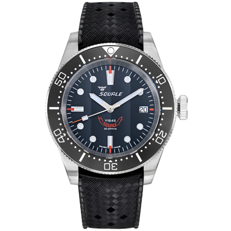 Squale Watch 1545 Black Rubber 1545BKBKC.HT. The 1545 collection was designed for those who love every aspect of water sports. This versatile watch is the ideal companion for a day of intense activity in the water. With a resistance of up to 30 atmospheres