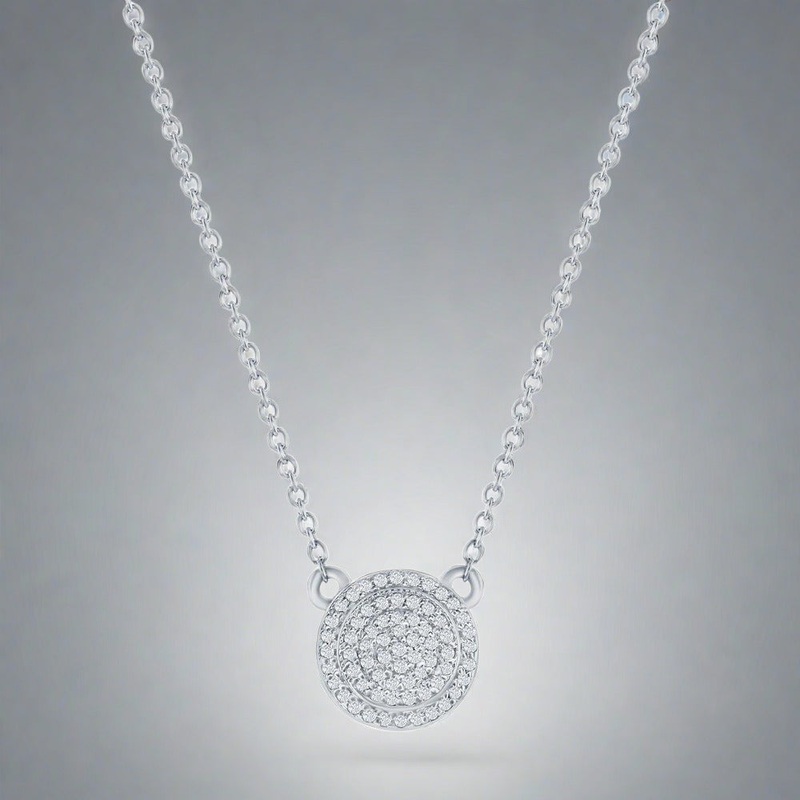 Crafted with exquisite attention to detail, this sterling silver pendant features a dazzling cluster of 0.11ctw round diamonds that radiate true brilliance. An opulent addition to any outfit, this timeless piece is sure to be cherished for years to come. C