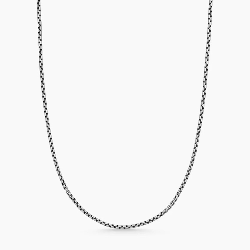 Discover an exclusive piece with this exquisite Sterling Silver 18″ Round Box Chain. Crafted of glimmering sterling, this piece dazzles with its intricate, interlocking pattern, perfect for formal or casual looks. Its universal size is ideal for any look, making it an essential addition to your wardrobe.