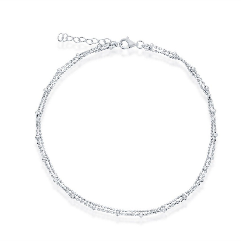 Step out in style with this Sterling Silver Double Strand Beaded Anklet! Crafted from sterling silver, you'll be the talk of the town with this timeless piece of jewelry! Put a little pep in your step and get ready to look fabulous!2.3grmsClosure:LobsterCo