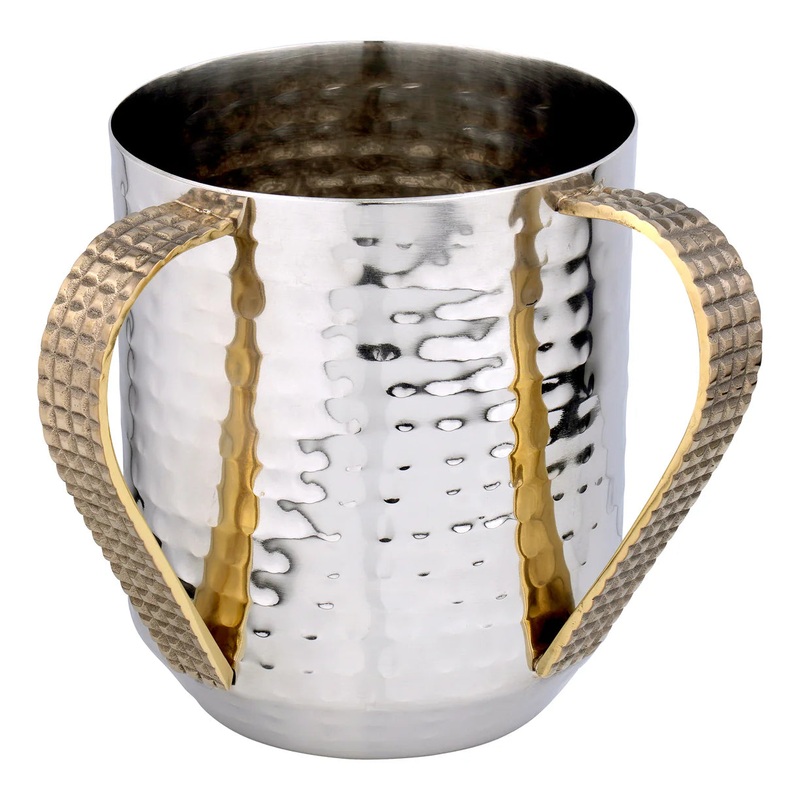 NKBO2994209571Steel Hammered Wash Cup with Round Decorative Handles