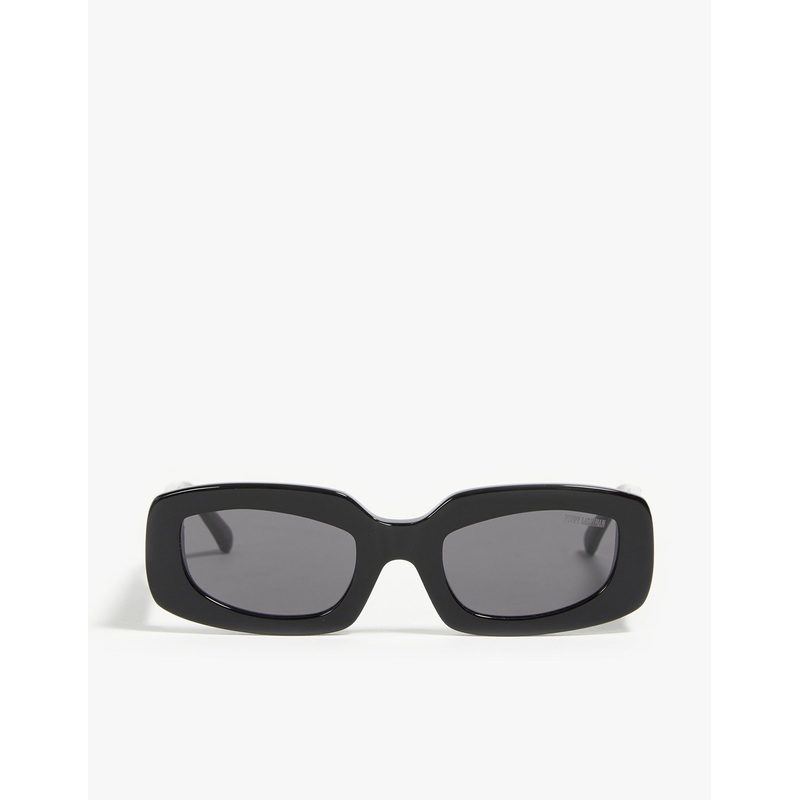 A unique square and oval shop that pays tribute to the 90s from Poppy Lissiman. In a shiny black acetate with gold hardware, these shades scream boss babe.Square sunglasses (Unisex)Black and white colourway Black lensGold hardware (Poppy Lissiman branding