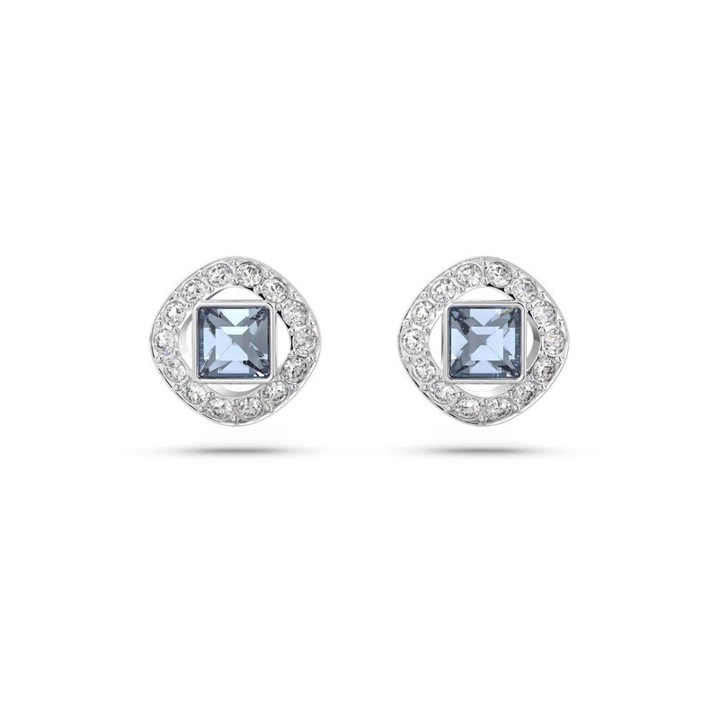 Classic Swarovski Angelic earrings feature a square cold blue crystal in the centre, framed by smaller clear crystals. The earrings are made of precious metal and plated in a beautifully pale finish. The earrings have a pin fastening with a strong clasp. Finish off your style with a pendant from the same set.
