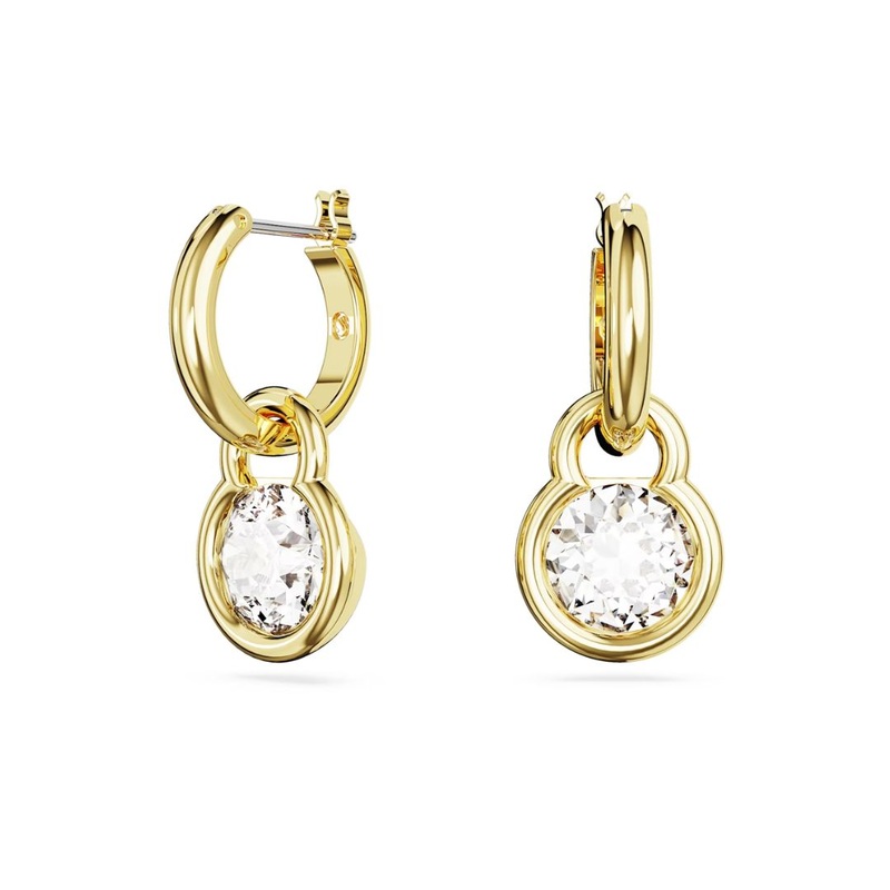 Swarovski Dextera earrings in yellow gold have beautiful round crystal pendants. Crystal pendants with yellow gold edges are attached to small gold-colored rings, creating an elegant whole. The material of the earrings is Swarovski jewelry metal, which is coated in a yellow gold color. The size of the earring is 2.8 x 1.2 cm . Combine with other Swarovski jewelry and create a personal ensemble.