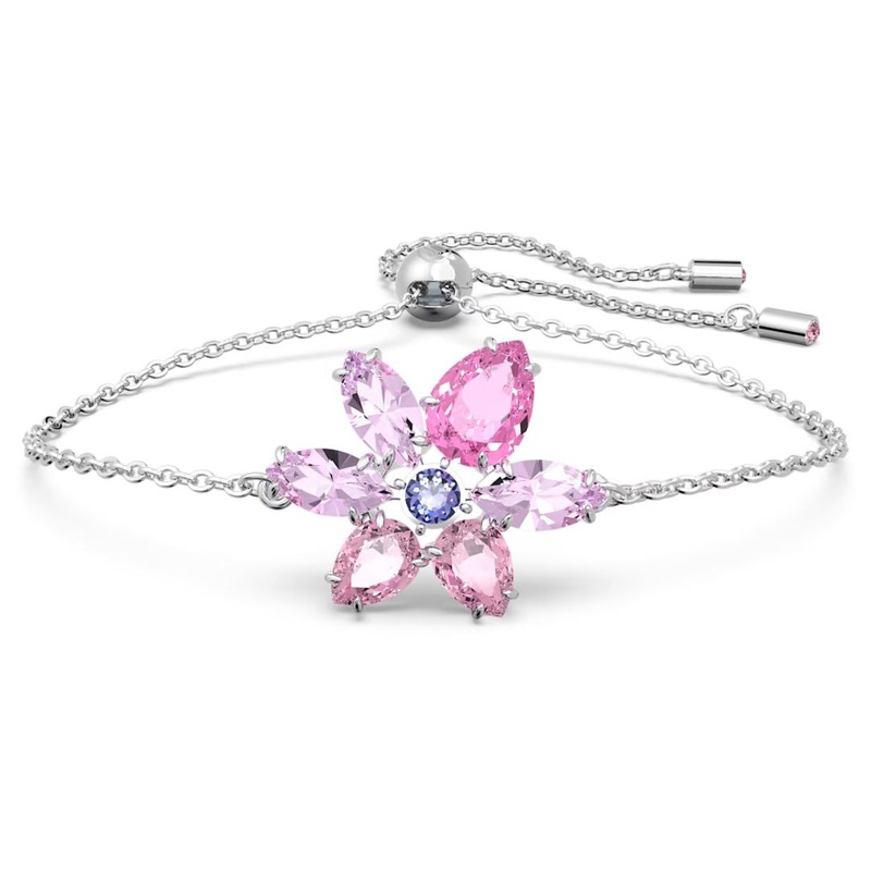Rhodium plated Swarovski Gema bracelet with pink crystals