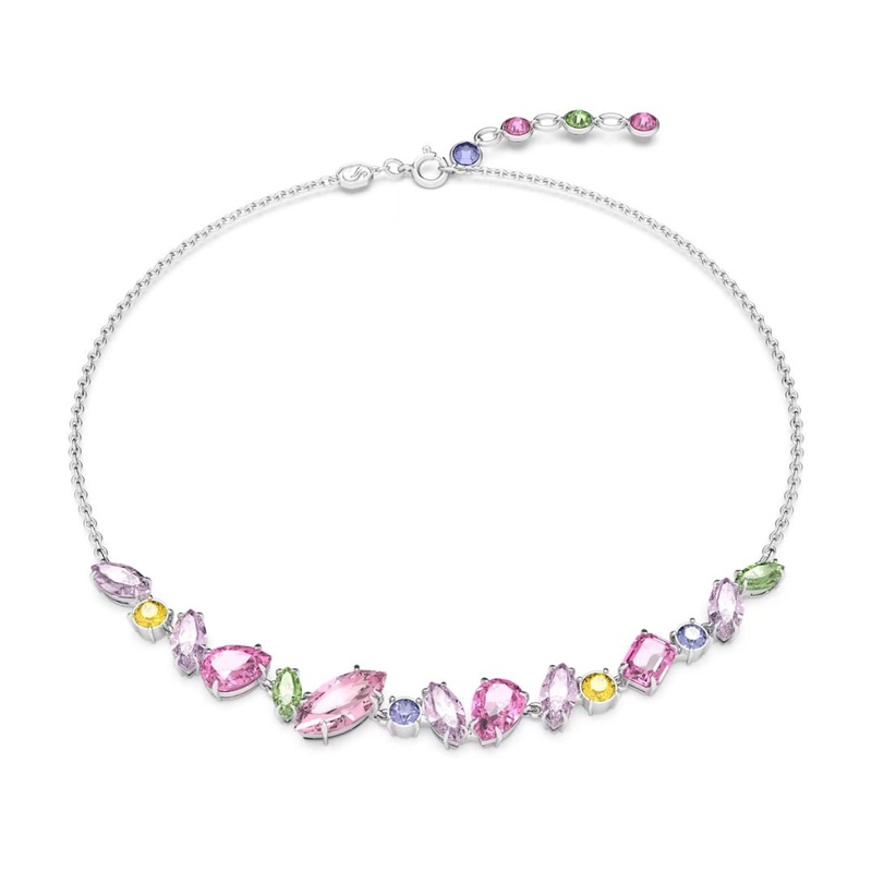 Beautiful Swarovski Gema necklace has crystals of different colors and different shapes. Sparkling pink, yellow, blue and green crystals fall beautifully on the neckline and together with a beautiful light rhodium-plated chain, they create a spectacular ensemble. The chain length is adjustable between 38-42 cm. Combine with other Swarovski Gema jewelry and create a personalized ensemble.