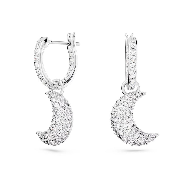 The graceful Swarovski Luna earrings have rings decorated with crystals and crescent moon pendants decorated with crystals. The crescent moon pendants feature pave-set crystals in five different sizes. The material of the earrings is Swarovski jewelry metal, which is rhodium-plated to a beautiful light color. The size of the earring is 2.5 x 1.1 cm . Combine with other Swarovski jewelry and create a personal ensemble.