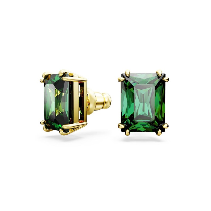 The Swarovski Matrix earrings in yellow gold have striking green crystals in double prong settings.The material of the earrings is Swarovski jewelry metal, which is plated in a yellow gold-tone. The size of the earring is 1.1 x 0.8 cm and it has a stud fastening. Combine with other Swarovski jewelry and create a personal ensemble.