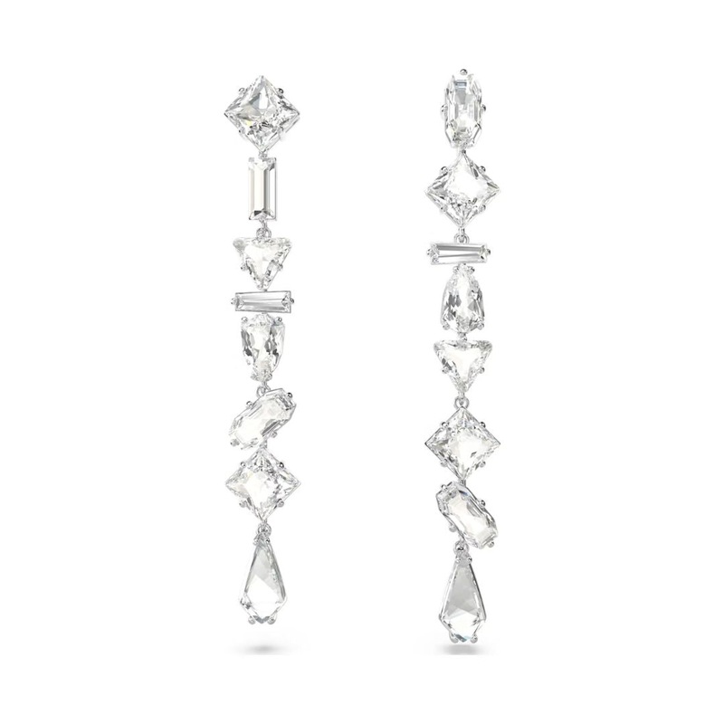 The Swarovski Dextera earrings on display have several clear crystals in different shapes and arranged one below the other. Asymmetry and beautifully refracting crystals make these earrings a real eye-catcher. The material of the earrings is Swarovski jewelry metal, which is rhodium-plated to a beautiful light color. The size of the earring is 6.5 x 0.7 cm. Combine with other Swarovski jewelry and create a personal ensemble.