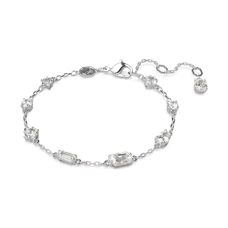 In the stylish Swarovski Mesmera bracelet, crystals with different cuts create a dramatic effect. The material of the bracelet is Swarovski jewelry metal, which is rhodium-plated to a beautiful light color. The length of the bracelet can be adjusted between 15 and 19.5 cm. Combine with other Swarovski jewelry and create a personal ensemble.