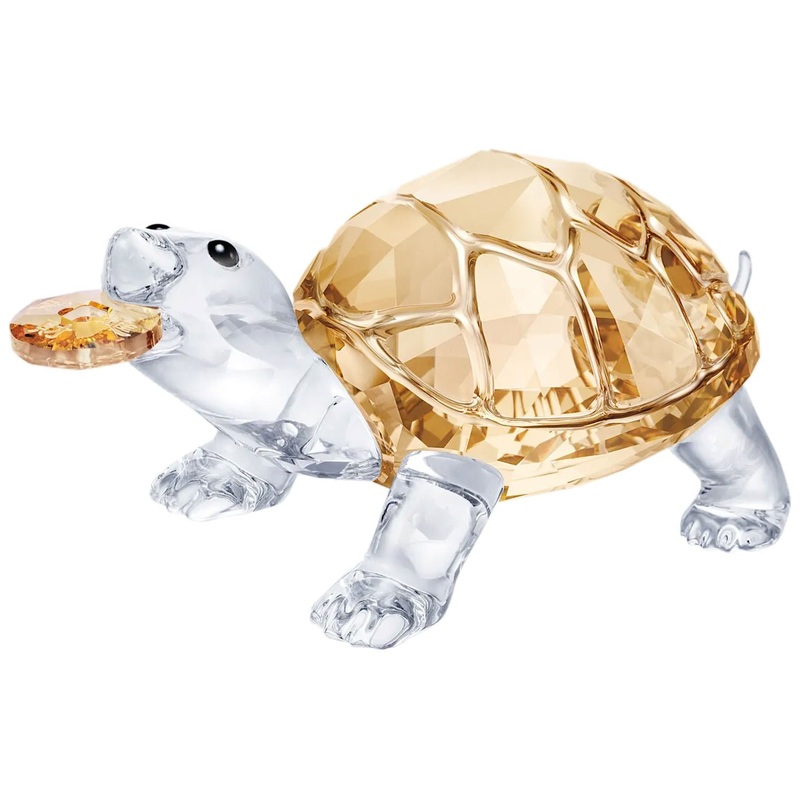 Full of symbolism, this exquisitely crafted Tortoise would make a meaningful gift or an extra-special home decoration piece. Featuring auspicious golden-colored crystal, it symbolizes health and longevity, and carries a coin in its mouth to represent a bright and wealthy future. Created in collaboration with artists from the Central Academy of Fine Arts in Beijing, the design showcases 698 crystal facets.