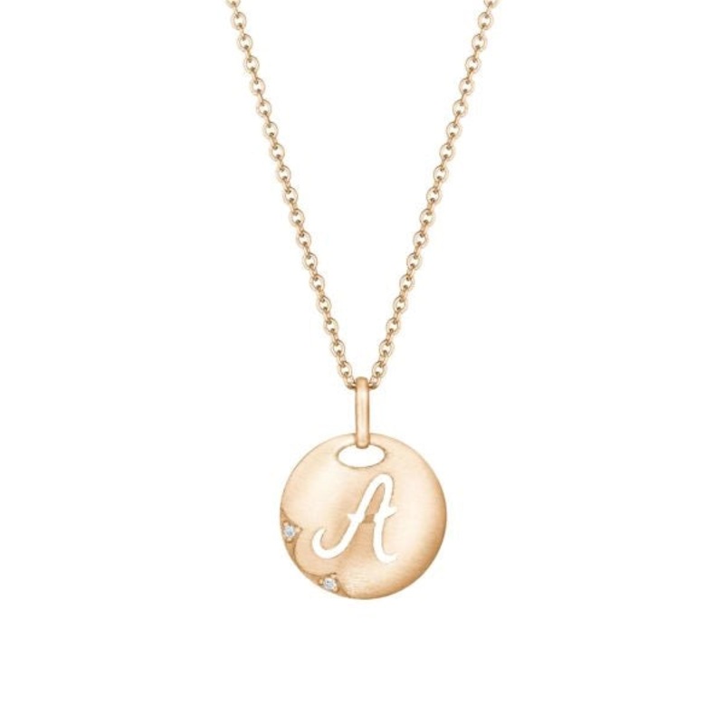 Ladies Tacori pendant. 14 karat rose gold. Initial ‘A’ pendant with diamonds, diamond total weight of 0.01 carat. *Chain not included