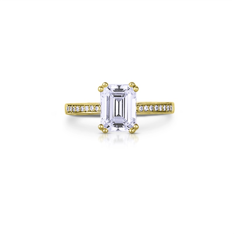Ladies Tacori diamond ring in 14 karat yellow gold. Set in the ring are 28 round brilliant cut diamonds with a total weight of 0.16 carat. *CZ Center