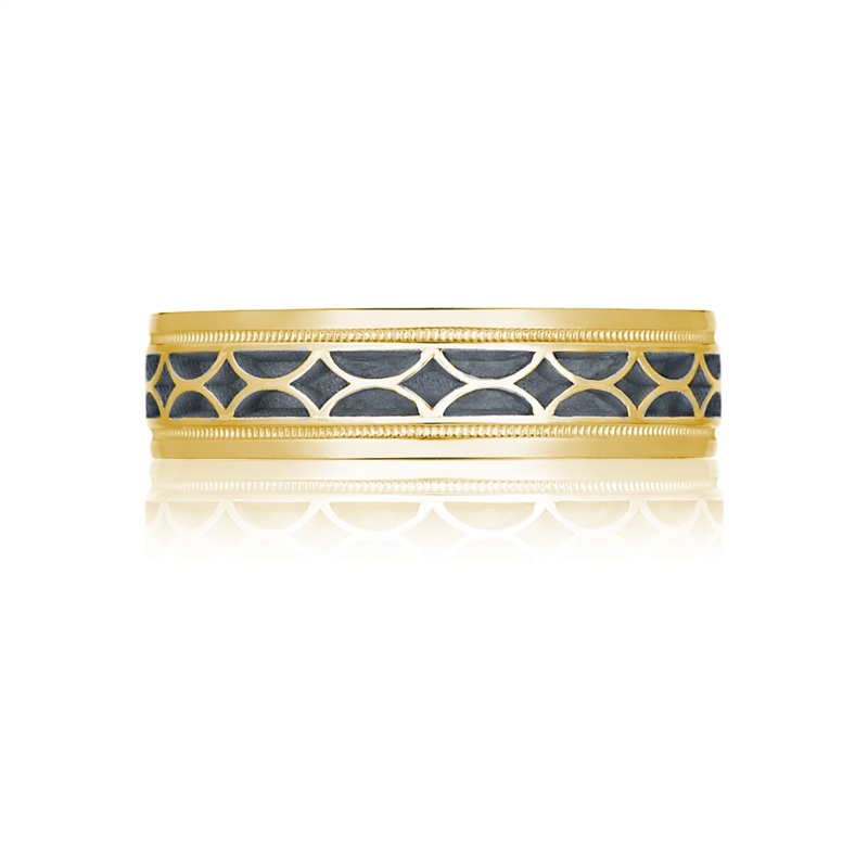 Gents Tacori 18 karat yellow gold band. 6mm Crescent sculpted design band.