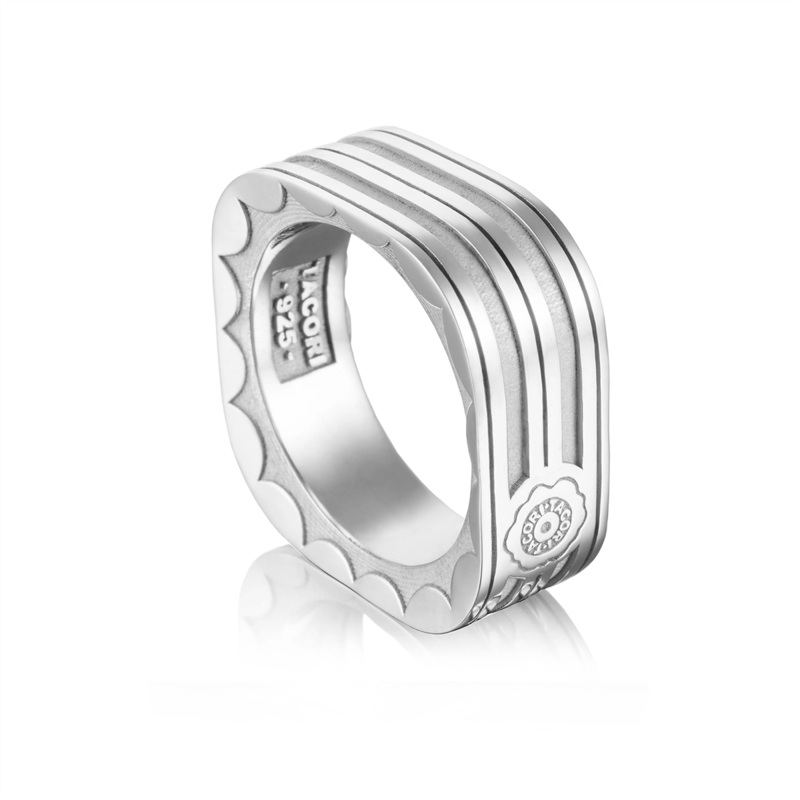 Gents Tacori ring. Sterling silver. Monterey roadster square racing lines ring. 1.00in wide by 1.00in long