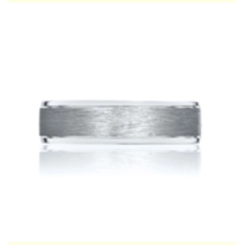 Gents Tacori band in 18 karat white gold. The ring has a brushed and high polished texture with a vented interior it is 5mm wide.