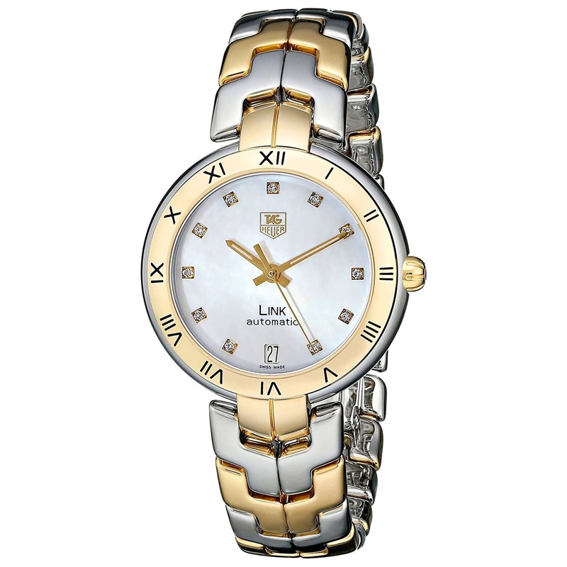 This TAG Heuer Link Automatic Yellow Gold and Steel Mother-of-Pearl Dial Diamonds Date Womens Watch Watch Model# WAT2351.BB0957 / WAT2351BB0957 is a lustrous timepiece that can enhance the appeal of a dress, gown, or any other type of clothing. The timepie