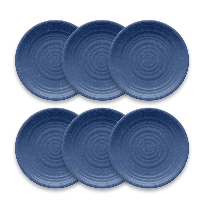 TarHong Planta Artisan Solid Dinner Plate, 10.5″, Planta (Majority Plant Based with Melamine Binder), Shatterproof, Indoor/Outdoor Entertaining, Set of 6, Blue Matte